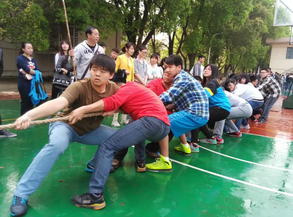 我院师生齐上阵,怀着必胜的信心,摩拳擦掌的准备着。第一场比赛对阵文法学院,队员们齐心协力,一鼓作气,在啦啦队员们的大声助威下,参赛的老师和同学气势大涨,连连取得胜利,最后晋级第二轮比赛。休息10分钟之后,第二场与城市建设学院的比赛拉开了帷幕。随着一声哨响,在啦啦队的响亮的呐喊声中,象征着胜利的红绳不断地向我们这边移动,最终我们获得第一轮胜利,第二轮交换场地后,受场地的影响,选手们发挥失常,以致最后遗憾的输掉了比赛。
