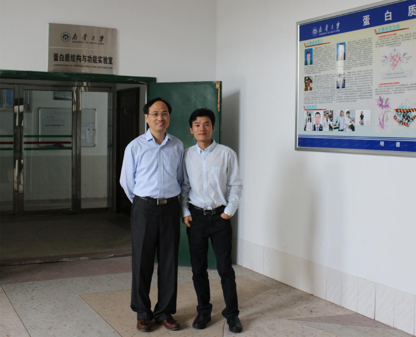 刘扬中教授(左)参观伟德国际1949蛋白质结构与功能实验室