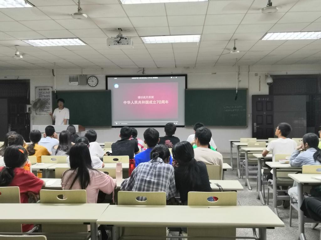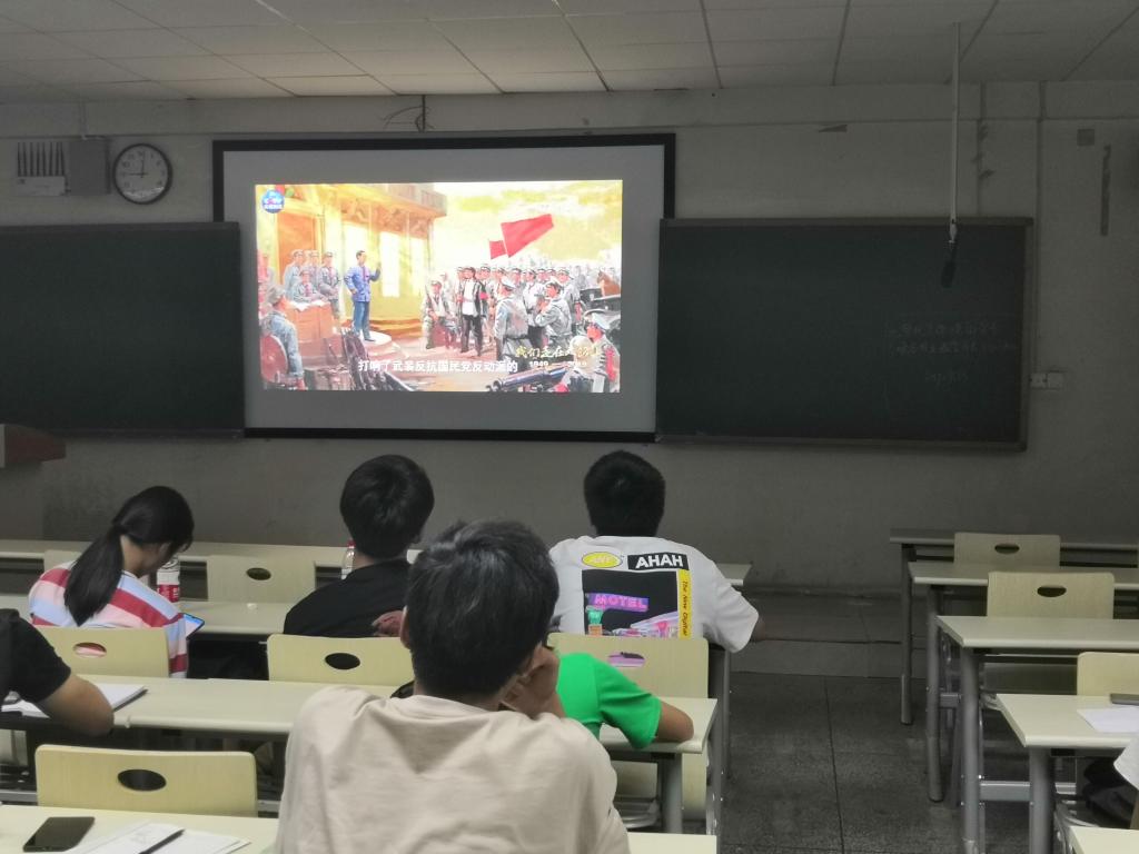为开展“不忘初心,牢记使命”主题教育,同时为庆祝新中国成立70周年,向在校学生宣传爱国主义精神,伟德betvlctor1949源于英国团委书记颜晔于9月23日在伟德国际1949红湘校区第九教学楼403带领第十九届团委学生会干部观看了影片《我们走在大路上--新中国的诞生》。