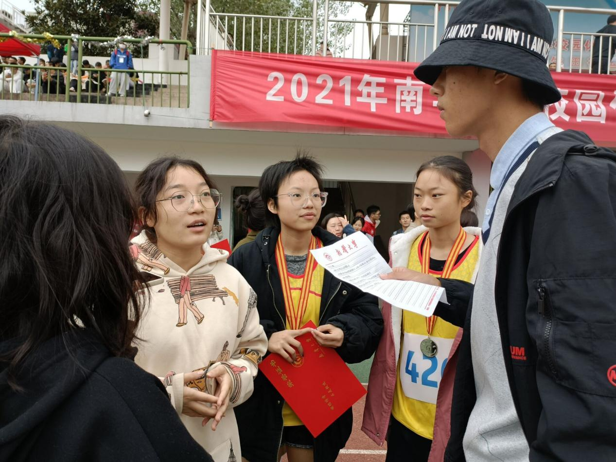 答:“嗯,我们老生9月份开学后就开始训练。新生军训期间,我们又在军训队伍中选拔了新的运动员,军训结束后,他们便跟我们一同训练,甚至在国庆假期期间,我们的训练也不曾落下,直到比赛前。训练的过程是艰苦且快乐的,很庆幸大家都坚持了下来。对于我个人而言也是深有感触,因为我已经大三了,每一年都有幸参与到大运会中,为学院争得荣誉,为自己拼搏努力,这一路走来真的很感动,也很感谢一路以来学院领导老师的支持与帮助。还有,我想对魏海丽学姐说声感谢,因为她今年已经大四了,正在备战考研,但她依然积极参与到我们的训练以及比赛当中。她的这种精神,让我非常感动,也在不断激励着化工院运动员(学弟学妹)们继续努力前行,再一次表达对魏海丽学姐的感谢,祝她考研成功!”