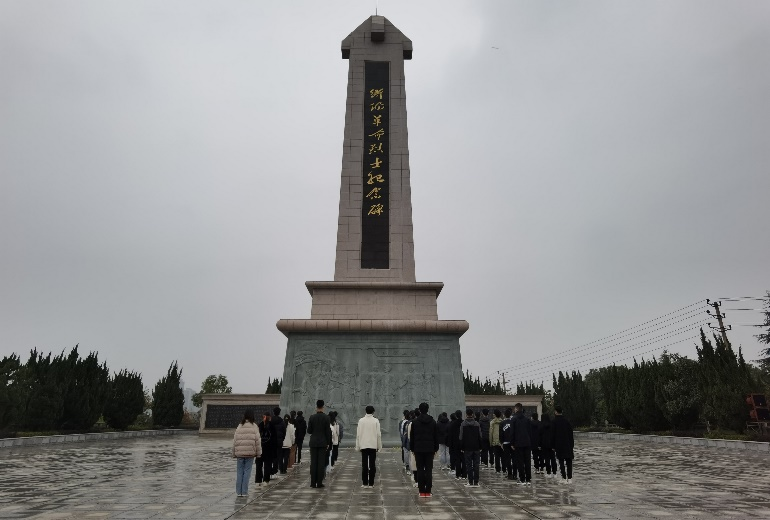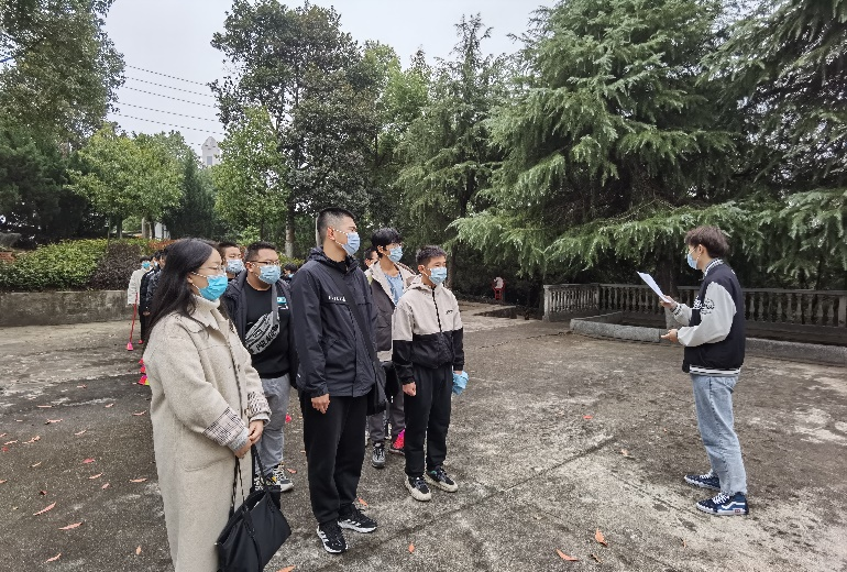 怀着悲痛而沉重的心情,同学们步入烈士陵园,在组织部崔羽晨同学的介绍下,了解到衡阳英勇殉职的消防战士们的英雄事迹。同学们在他们的纪念碑下,满怀真切敬意深鞠一躬。之后,崔羽晨在衡阳烈士纪念碑前发表纪念演讲:“只有真切地了解历史,才能正确地认识历史。只有以史为鉴,才能面向未来。”同学们端庄肃立、献花以表对先烈的敬佩。全体成员在纪念碑前默哀一分钟,以表达对烈士无限的追思、缅怀与敬意。