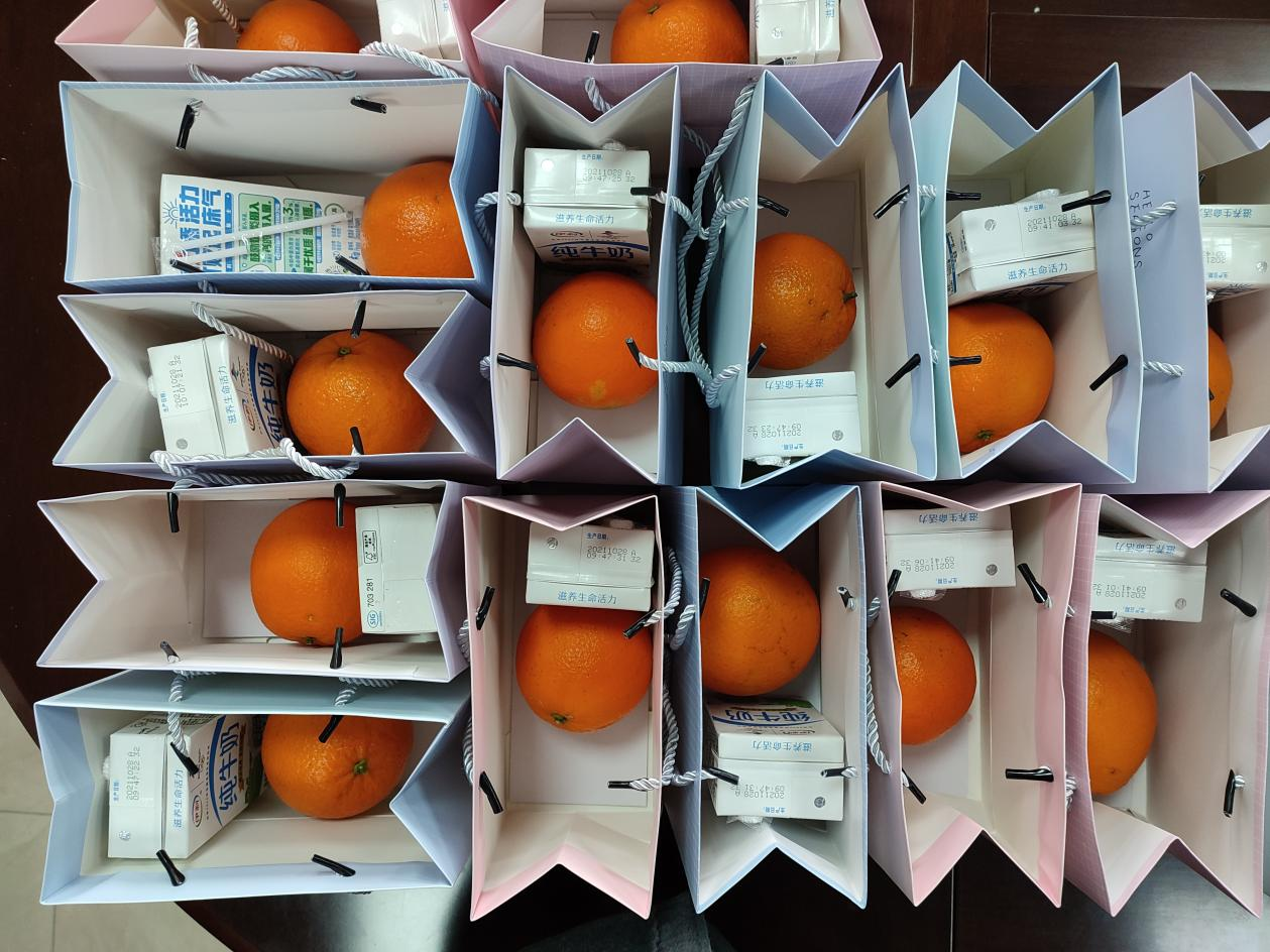 最后,学院为所有考研的同学献上最真诚的祝福,为每一位考研学子都准备了写满祝福语的贺卡和美好寓意的礼品。卡片上,既有老师们祝福的话语,也有来自学弟学妹们的鼓励与支持。礼品袋中有一个橙子和一瓶牛奶,寓意心想事“橙”,牛气冲天,祝愿大家聚力青春,“橙”功上岸。