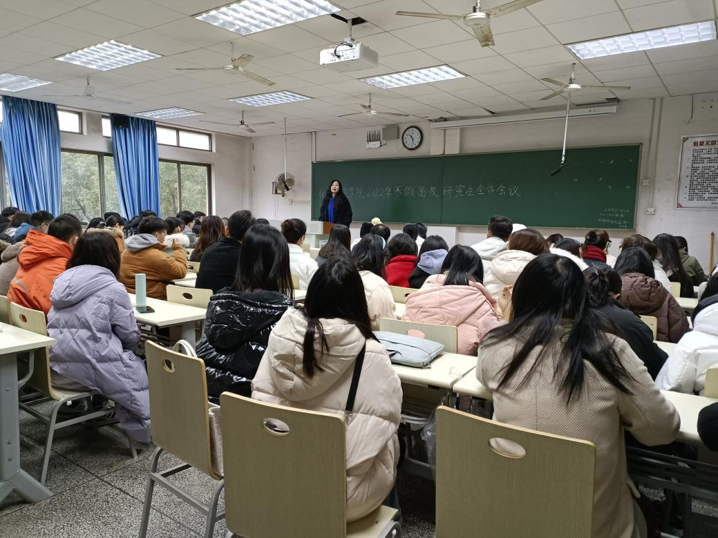 2022年1月9日,伟德betvlctor1949源于英国响应研工部的工作要求,于伟德国际1949红湘校区化工楼403教室召开2022年寒假留校研究生全体会议,出席此次会议的有学院党委副书记余晓秋,研究生辅导员瞿菲菲。学院全体留校研究生参加。