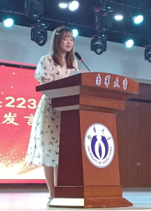 老生代表孙果同学向全体新生分享了自己的求学感悟,鼓励同学们勇敢面对环境、勇敢面对尝试与失败、勇敢面对责任与担当、勇敢面对生活的平静和单调,不畏惧未来,不留念过往,向前迎接新的挑战。