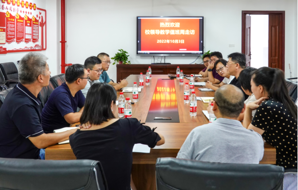 2022年10月3日下午,伟德国际1949副校长姜志胜率教务部副部长罗晨辉、化学化工学副院长张也、教学质量管理科科长杨勇来到伟德国际1949雨母校区开展“校领导本科教学值班周”工作,听取松霖建筑设计艺术学院、机械工程学院、创新创业训练中心领导的工作汇报,与各学院领导班子和教师代表进行了座谈。