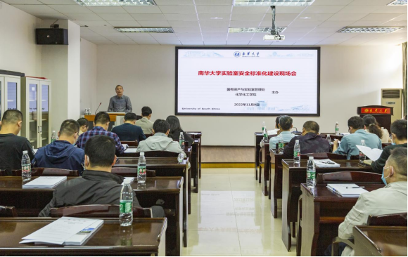 首先,院长林英武介绍了我院开展实验室安全标准化建设的成果,我院对标实验室规范化、标准化建设的要求,改建危化品储存室,配齐安全标识标牌,实验室分类分级认定、人员安全培训、实验室准入等实验室安全相关方面做了大量有效工作,完善了实验室安全管理机制。