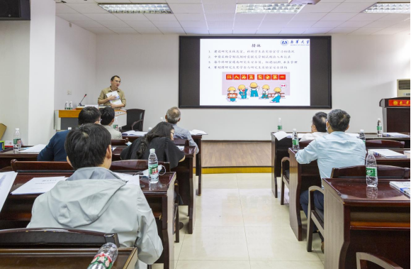 国有资产与实验室管理处处长李望平领学了教育部及学校近期出台的实验室管理有关文件精神,总结了近期危化品管理、实验室改造、实验室安全巡查、安全培训等工作,对实验室安全管理工作提出了建议。