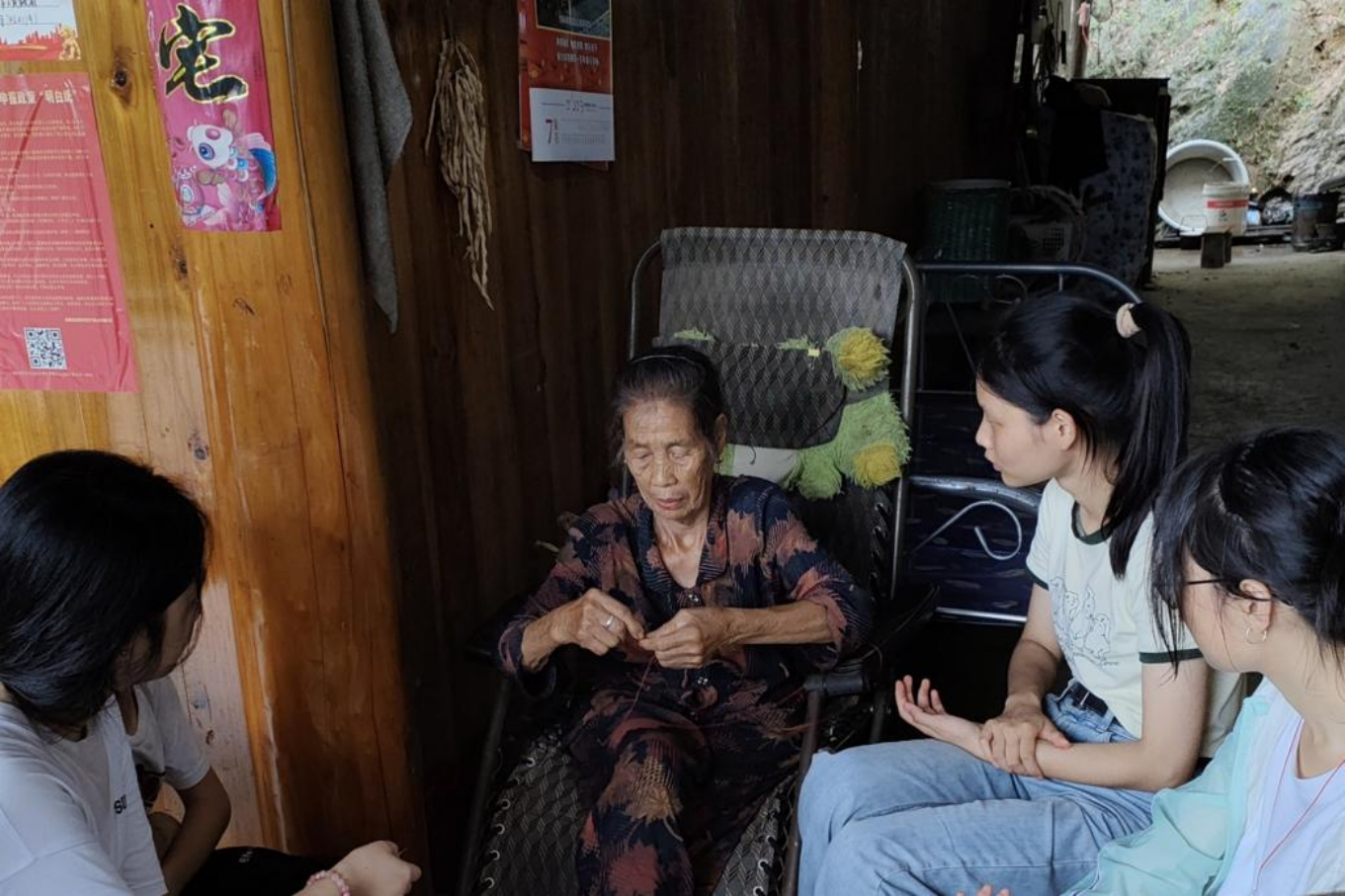 实践服务团成员在走访中得知多逸寨村有一种独特的苗族技艺——用竹笋壳制作物品。经过跋山涉水,实践服务团成员在大山深处找到了技艺传承人彭奶奶。实践服务团成员对彭奶奶进行了采访,近距离观看了竹笋壳编物的高超技艺,了解了这项独特技艺背后的故事。在听到彭奶奶表示目前这项技艺存在着传承难题后,实践服务团成员积极进行了学习尝试,并拍摄了宣传视频。