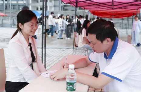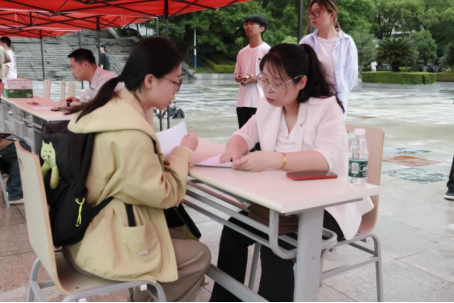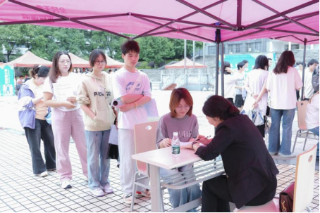 在活动简历诊断区,单云丽等老师对同学们的简历进行优化指导,结合同学们的在校经历,针对性地提供修改意见,突出个人优势提升求职综合素质。求职礼仪区,邓丝席老师对同学们进行面试仪容、仪态的规范化指导。求职面试区,6-8名同学为一组进行模拟面试,陈楠等老师根据同学们的临场表现,结合简历信息,提供针对性建议,并现场分享面试技巧,提升同学们的面试能力及规范化意识。在身心舒缓区,设计了手作口红唇膏、零食套圈等趣味活动,以美育、劳育舒缓学生焦虑和压力。