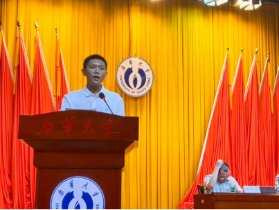 新生代表侯典宇同学发言,呼吁大家明确目标、携手共进,在挑战中不断成长、成就更好的自己。