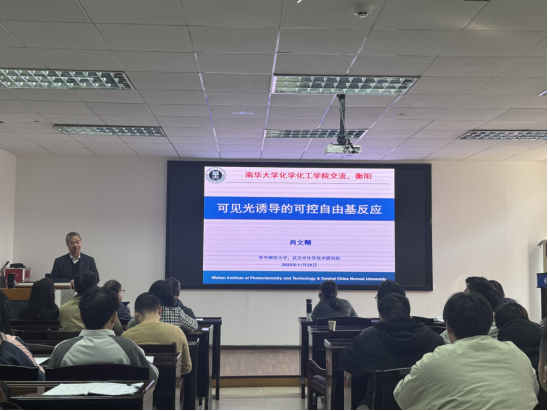 11月24日上午,华中师范大学化学学院院长肖文精教授应邀来伟德betvlctor1949源于英国交流访问,在化工楼学术报告厅为我院师生带来了一场题为"可见光诱导的可控自由基反应"的学术报告,此次讲座由我院王宏青教授主持。