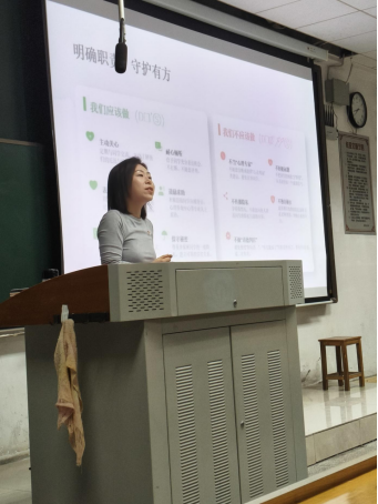 在筑牢“物理防线”的同时,活动也为同学们的“心理防线”添砖加瓦。在心理健康板块,辅导员陈楠针对大学生常见的学业压力、人际困扰及情绪调节等问题,与同学们展开了温暖互动。她引导大家正视负面情绪,分享科学调适方法,鼓励学生在遇到困扰时打破顾虑、主动求助,以积极乐观的心态迎接成长挑战。