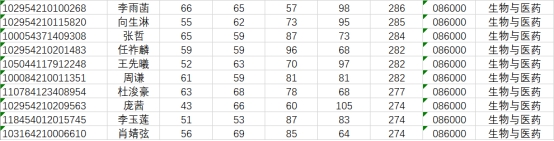 生物与医药:9-416;材料与化工:9-401