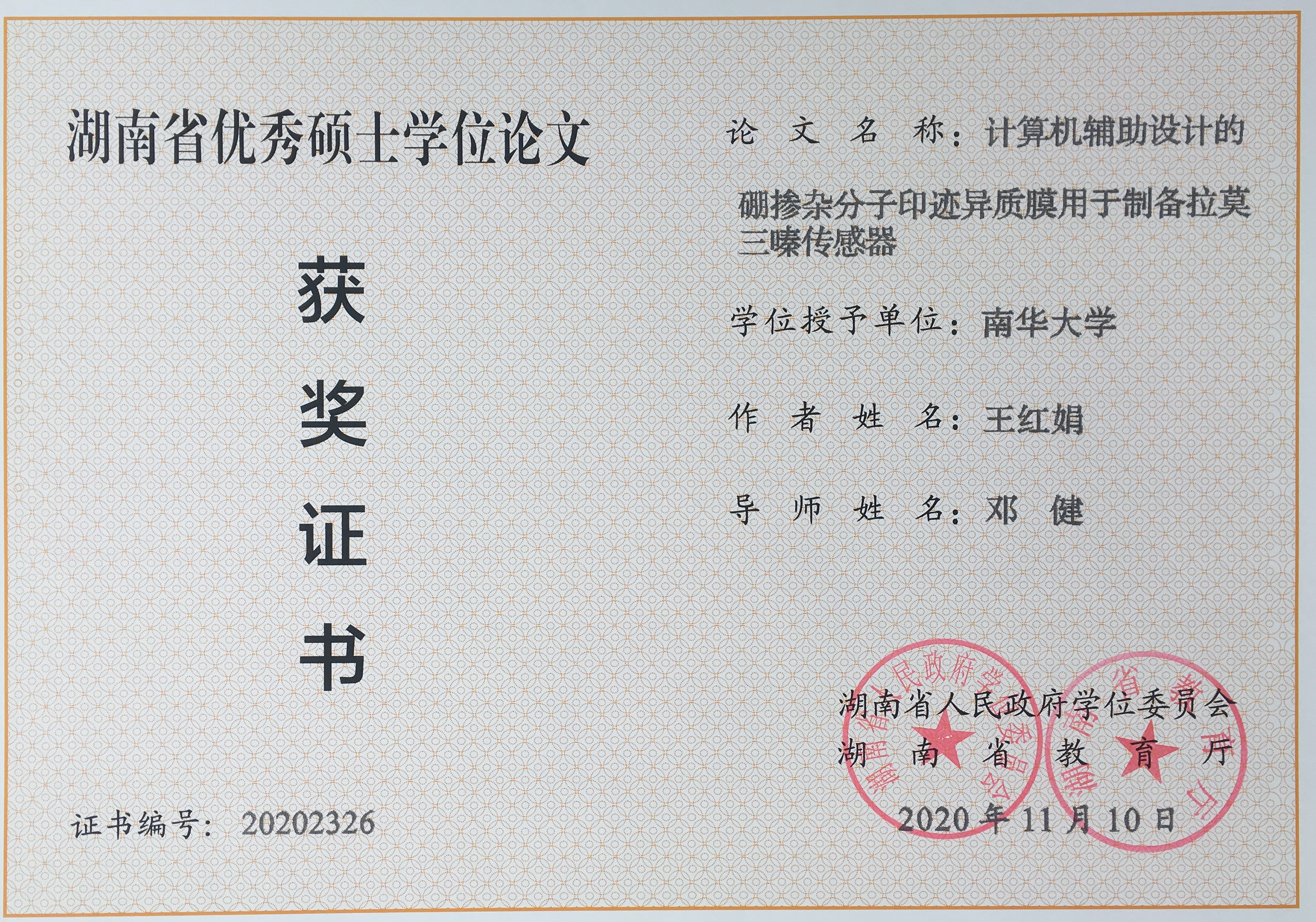 我院阳东旭、王红娟同学荣获2020年湖南省优秀硕士学位论文