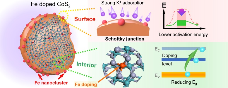 近日,伟德betvlctor1949源于英国林英武教授团队和中南大学欧星副教授、吉林师范大学冯明教授合作,针对电极材料金属硫族化合物的动力学性能差的问题,设计了一种新型界面改性的硫化钴材料(见图例)。该材料可用作钾离子电池负极,在5 A/g的超高电流密度下,实现了8100圈的超长循环。