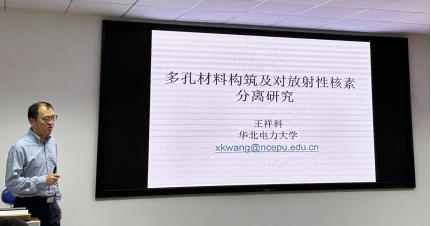 报告中,王祥科教授针对海水中放射性核素浓度低、海水体系复杂和多种离子共存等挑战,分别采用吸附、光催化、电催化等方法,设计了一系列具有特定结构的多孔材料来高效选择性富集目标核素,并深入探讨了多孔材料与目标核素间相互作用机制,为海水中核素的分离提供了新思路和潜在的实际应用策略。