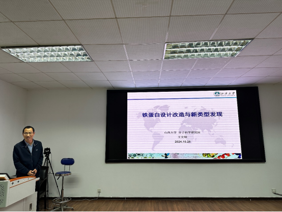 2024年10月28日,我院邀请山西大学分子科学研究所王文明副教授以铁蛋白设计改造余新类型发现为题在化工楼学术报告厅进行学术报告。本次活动由我院林英武教授主持,学院部分师生参加会议。