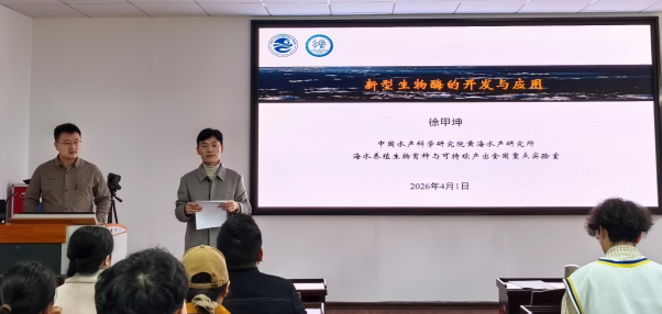 2026年4月1日下午,中国水产科学研究院黄海水产研究所徐甲坤研究员,应邀到我院做了主题为“新型生物酶的开发与应用”的学术报告。讲座由伟德betvlctor1949源于英国林英武院长主持,报告吸引了众多化学科研工作者和硕士研究生的关注和聆听。