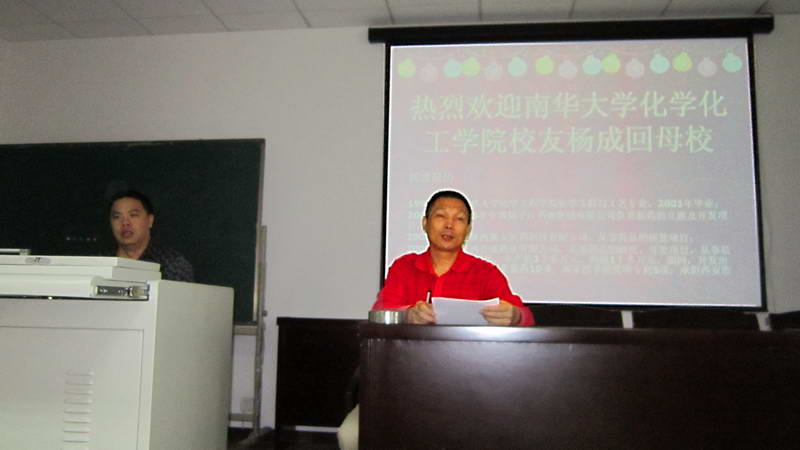 杨成校友以自己十年的创业历程为例,道出了创业的艰辛与不易,其中冷静的分析、坚持不懈的精神和机遇是他创业成功的基本保障。随后,他分析了当前化学工程的就业前景和人才需求的发展趋势,鼓励同学们在校认真学习,为以后的就业积累更多的筹码。最后,他与同学们进行互动,详细解答了同学们在就业及专业知识运用方面的疑问。
