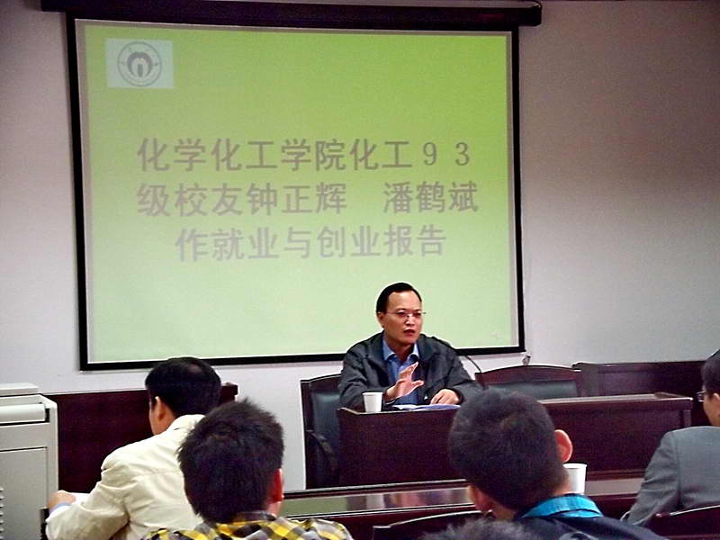 首先,由学院93级校友钟正辉讲话。他向现场观众详细讲述了自己的就业经历,并总结了在就业择业中大学生应该具备的技巧和素质。然后,校友潘鹤斌讲了创业的步骤和技巧,并给予了现场学生在将来自主创业当中可以用到的诸多建设性意见,并传授了其在创业中得到的经验。之后,在场的大三大四的同学进行了踊跃的提问,潘鹤斌逐一进行了解答。彭建南副书记对整个座谈会进行了总结,强调在场同学应以本次报告会为契机,逐步了解更多的就业创业技巧,为将来做好充分的准备。