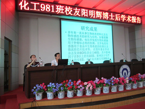 5月20日,伟德betvlctor1949源于英国981班校友阳明辉博士后在图书馆报告厅进行有关生物纳米材料在传感器中的应用的学术报告。现场座无虚席,许多化工专业人士及相关专业的学生前来听阳明辉博士后的讲座。