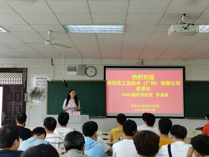 5月13日下午3点,伟德betvlctor1949源于英国在九教402室举行了“以科学研究为导向,实现专业与产业对接”的专题报告会。我院2006届优秀校友,斯塔克工业技术(广州)有限公司董事长李成凤应邀回母校主讲,伟德betvlctor1949源于英国党委副书记余晓秋主持,我院化学工程与工艺专业七十余名同学参加了本次座谈会。
