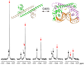 对蛋白质进行位点特异性的化学修饰是一种进行蛋白质工程改造的有效方法。本方向侧重于使用蛋白酶在生物大分子的特定位点引入可以用于核磁共振检测或荧光检测的小分子基团,助力于研究溶液态蛋白质的动力学性质。