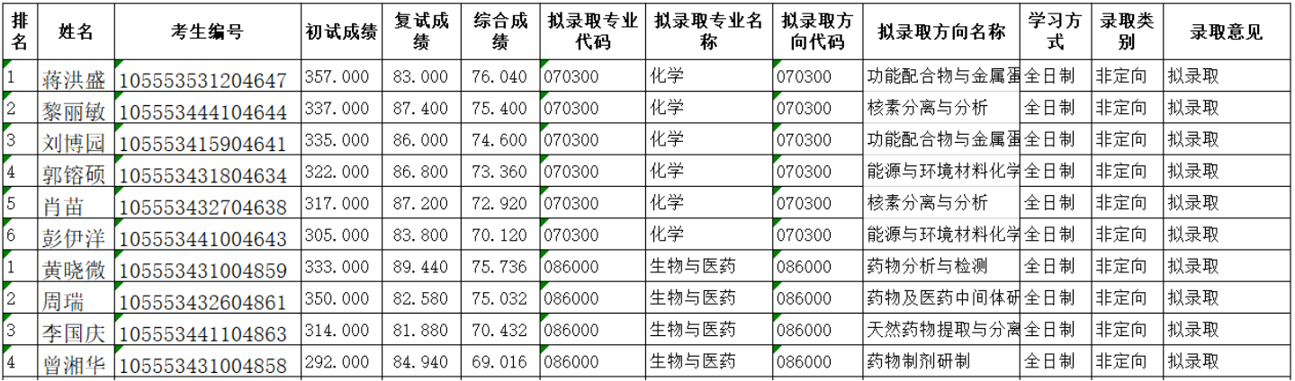 按照学校及我院研究生招生工作的复试方案,根据2023年4月1-2日的复试成绩排名,现公布最终拟录取名单如下。对复试成绩及上述同学的建议录取有异议,请以书面形式于2023年4月16日前向学院反映。反映情况要实事求是,具体真实,署真实姓名,以便调查核实。电话:0734-8281743,联系人:王老师。