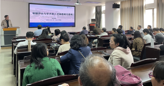 王宏青围绕“深入学习党的二十大精神,推动审核评估工作开展”作了专题宣讲,希望大家能以饱满的热情和良好的精神面貌迎接此次教育教学审核评估。林英武以“凝心聚力,做好审核性评估工作,落实学术性人才培养方针”的专题报告动员大家,希望大家都能在此次评估中同心同力。刘泽华在报告中首先介绍了新一轮审核评估的精髓要义,讲述了此次评估的新变化和背景特点,之后结合我校的办学情况和办学目标解释了我校选择学术型人才培养的原因,并指出如何强化基础理论、推进科教融合、加强四新建设、改进学业评价是学术型人才培养的关键问题。最后,张也以怎么培养化学类学术人才带着大家一起探讨思考如何做好此次审核评估。