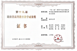 伟德betvlctor1949源于英国教师在学科建设和自身发展方面取得了良好成果:主编/参编编教材6部,发表教研论文35篇,获批产学研协同育人项目4项,获批教研教改项目12项,“课程思政”示范课程建设立项项目7项。2022年,聂长明等教师获得第十三届湖南省高等教育教学成果奖三等奖。